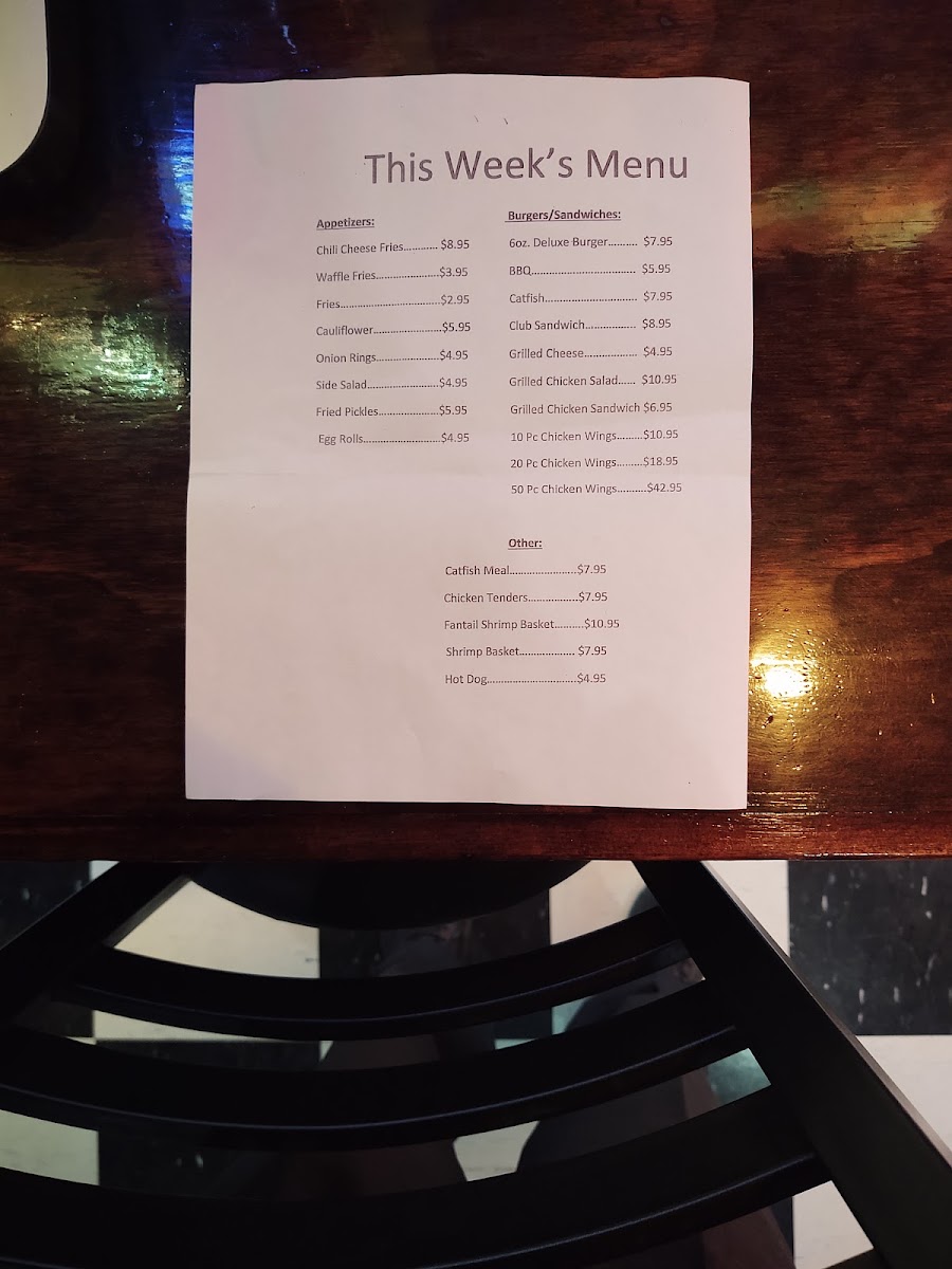 “ My rating is based on the overall atmosphere and cleanliness of Charlie's Sports Bar, where I ate catfish, coleslaw, french fries, and hush puppies. Though most patrons come to drink alcohol to relax or party, I came to eat. I sat, ate, and observed the overall atmosphere for over an hour. No beer bottle smashing or disorderly conduct occurred during that period. The food was decent, especially in considering that the beautiful Barkeep, Charly, multitasks as the bartender, waitress, and cook. Charlie's Sports Bar offers its customers a variety of other activities to engage in for entertainment. For a bar in particular, the business was clean, including the restroom. ”